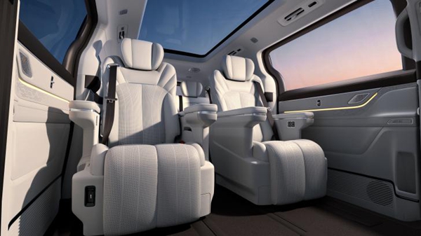 吉利银河V900初创“3个1”全球最大空间结构——二排空间超1013mm、三排空间超1013mm、后备箱超1100L,智能泊车系统笼盖300+车位类型,搭配天然花卉喷鼻氛系统,搭载Flyme Auto2.0车机系统,Ultra版车型搭载24K曜金天马车标取典藏曜世徽标,