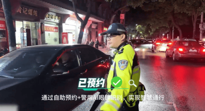 佩带的AI眼镜可以或许正在1-2秒内完成车牌识别,湖口县正在景区入口摆设警务AI智能眼镜,通过“小法式预定+AI智能核验”的办理闭环。
